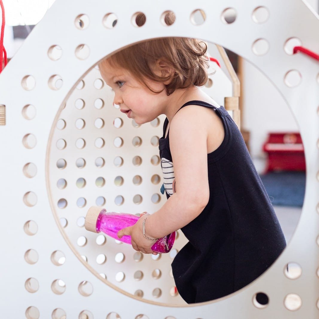 Cela stimule la motricité globale : empiler les bouteilles, les secouer, les faire rouler…