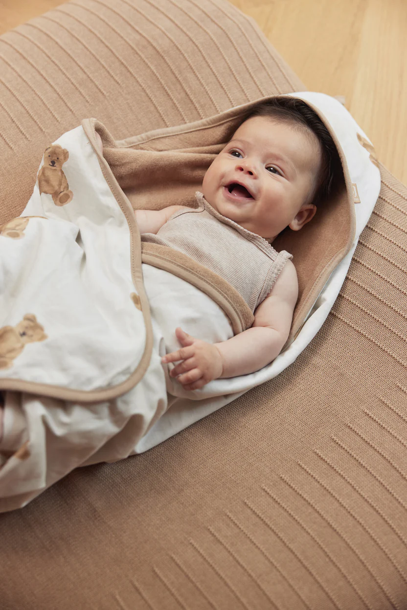 Après un bain ou une baignade, cette cape de bain est idéale. Tu enveloppes chaudement ton bébé dès qu’il sort de l’eau. La capuche recouvre la tête, de sorte qu’elle aussi reste bien au chaud. Confortable pour ton bébé ! La cape de bain est fabriquée en 100 % coton éponge. L’extérieur est en 100 % jersey. Le tissu souple est doux pour la peau délicate de bébé et absorbe bien l’humidité, ce qui facilite le séchage des serviettes. Après utilisation, tu peux facilement accrocher la cape par la boucle. La cape de bain mesure 75x75cm. La cape de bain est colorée avec un motif super mignon d’un ourson.