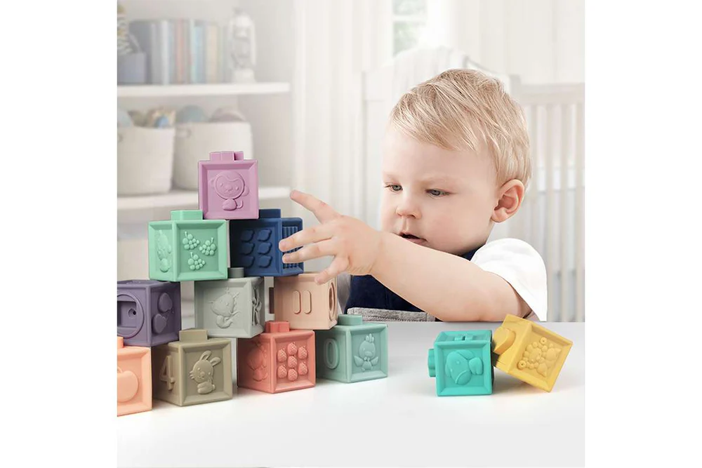 Avec leurs couleurs pastel, leurs jolies illustrations d’animaux, de fruits, de formes et de chiffres en 3D et leur texture agréable, ces cubes plairont aux enfants. En matière souple, ils sont sans danger pour les bébés. Facilement préhensibles, ils s’empilent et s’emboîtent, favorisant ainsi le développement de la motricité fine ainsi que la coordination de bébé. Les cubes éducatifs offrent d’infinies possibilités de jeux ! Les enfants plus grands apprendront à reconnaitre les chiffres et à compter tout en s’amusant !